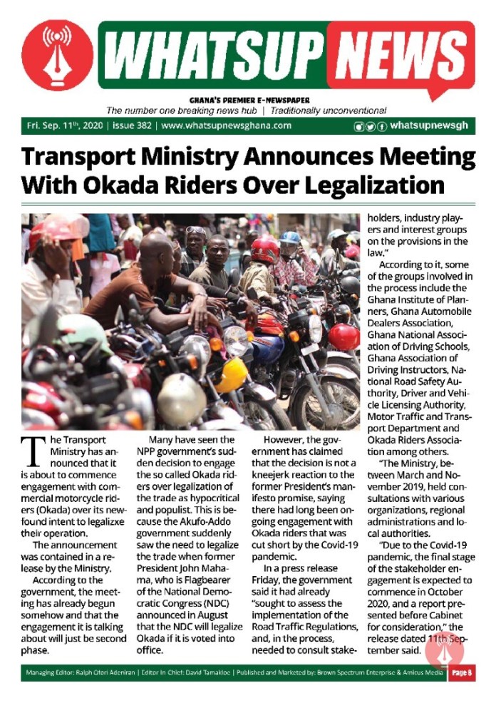 Many have seen the NPP government’s sudden decision to engage the so called Okada riders over legalization of the trade as hypocritical and populist. This is because the Akufo-Addo government suddenly saw the need to legalize the trade when former President John Mahama, who is Flagbearer of the National Democratic Congress (NDC) announced in August that the NDC will legalize Okada if it is voted into office.