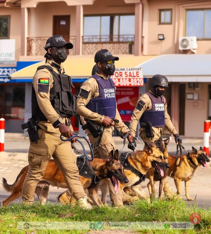 “As part of the Proactive Preventive Policing Strategy, the K-9 Unit of the Ghana Police Service, with renewed energy, has commenced its outdoor operations. For the past couple of weeks, personnel with highly-trained security dogs under leash, have been strategically positioned across the Capital for operational patrols,” the Police said in the statement.